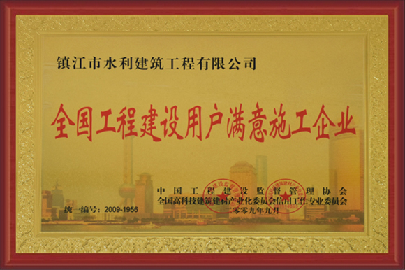 公司被評為重合同守信用企業(yè)、江蘇省水利安全生產(chǎn)標(biāo)準(zhǔn)化二級單位、AAA級資信企業(yè)、誠信示范企業(yè)、全國工程建設(shè)用戶滿意施工企業(yè)。